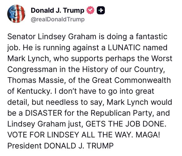 MAGA = Praise Lindsey Graham, Denounce Thomas Massie